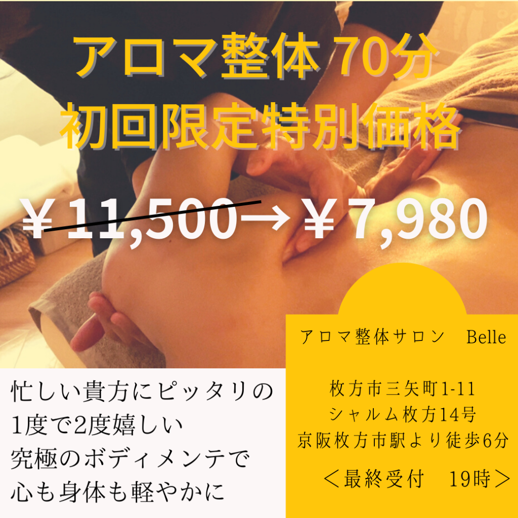 枚方市駅から徒歩5分の完全個室、女性専用のアロマ整体サロンBelleです🌼